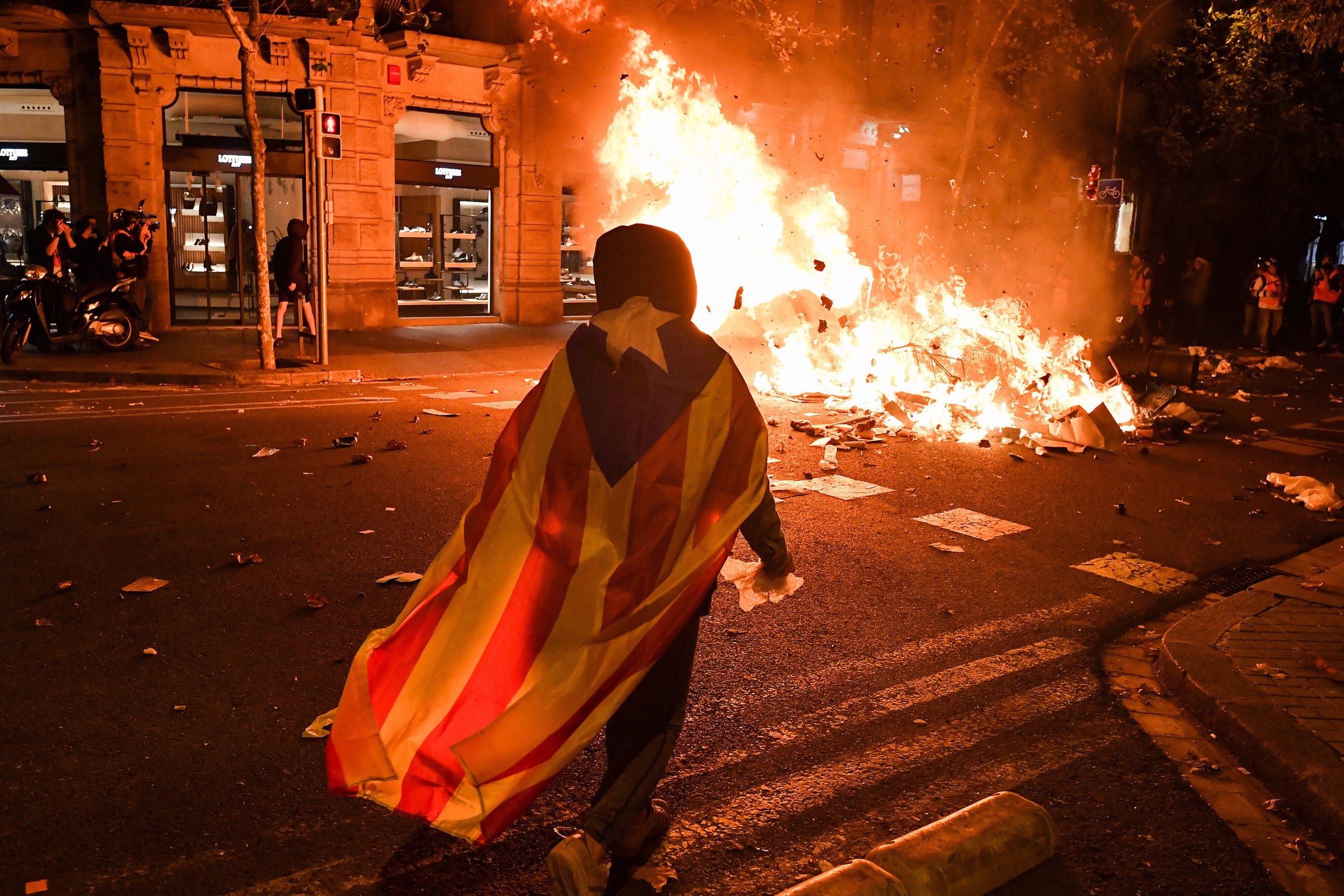 Protesters take to the streets in Barcelona, Spain, on Oct. 17 to demonstrate after the Spanish Supreme Court sentenced nine Catalan separatist leaders to between nine and 13 years in prison for their role in the failed Catalan referendum of 2017.