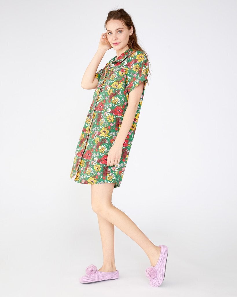 ban.do Short Sleeve Leisure Dress – Emerald Super Bloom