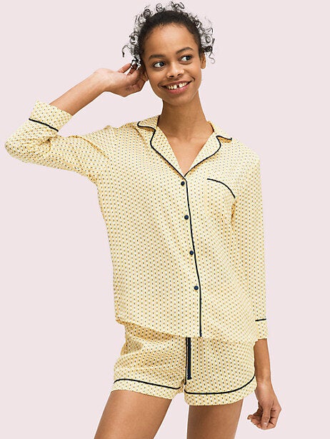 But if you want something a little nicer than your usual pajamas that consist of an old college T-shirt and holey yoga pants, there are plenty of options for that, too. From dressy pajamas tops that you could wear to work to PJs you wouldn’t be embarrassed for the delivery guy to see, you can’t go wrong with pretty, dressy pajamas that’ll have you feeling your best for a day spent indoors.