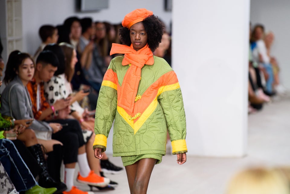 A model walks the runway at the Richard Malone show during London Fashion Week on Sept. 16.