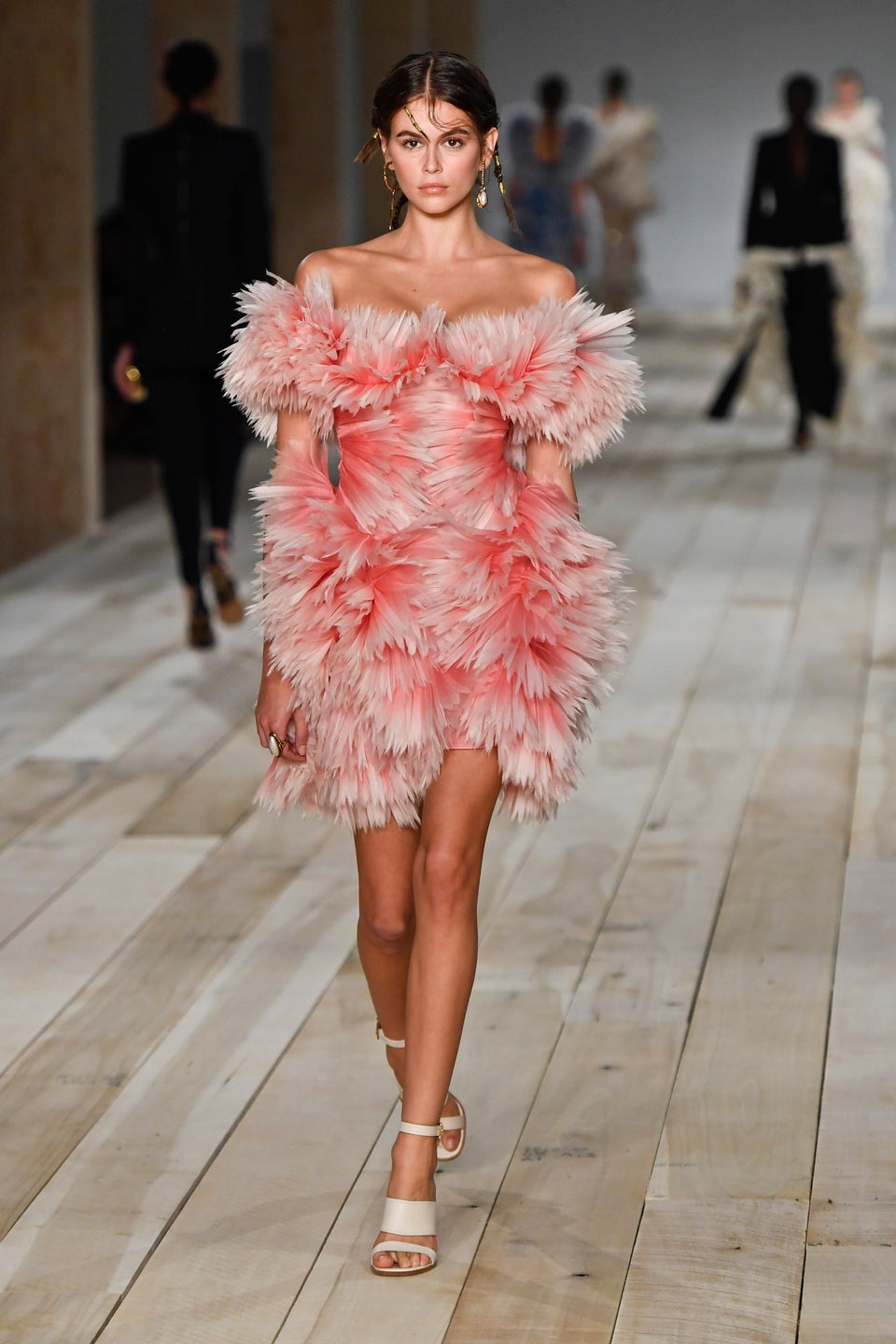 Models walk the runway during the Alexander McQueen spring/summer 2020 show during Paris Fashion Week on Sept. 30.