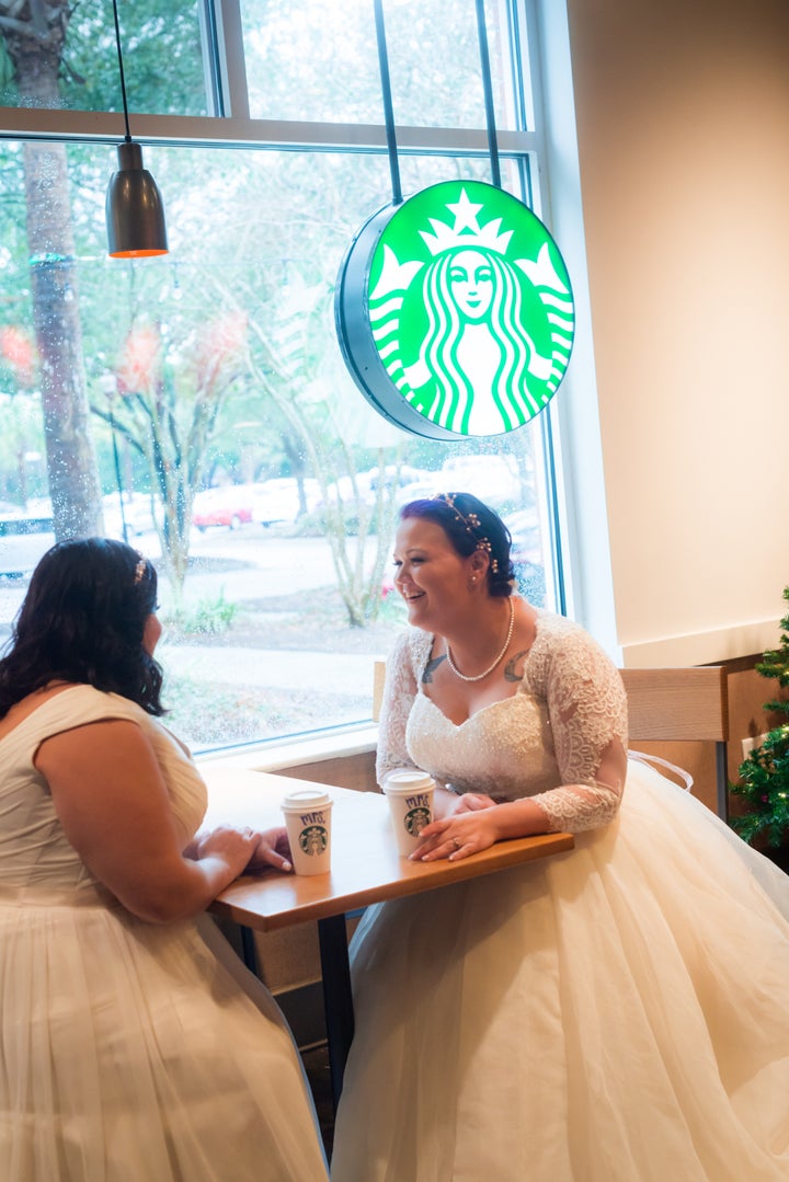 One of their friends, Megan Houghtaling, had an idea: They could do the wedding at a nearby Starbucks since Plyler and Mang first met at one while working as baristas. Several of their friends who were there for the elopement were Starbucks employees, too.